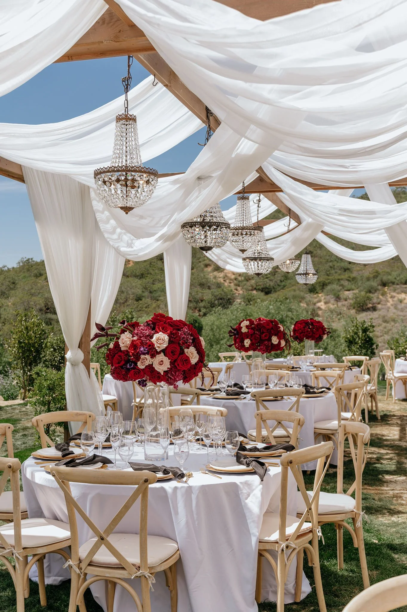 Effortless flow from outdoor ceremony to al fresco dining under a dramatic, elevated atmosphere